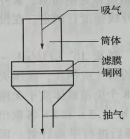 開動(dòng)電機(jī)后,抽氣泵工作,帶動(dòng)空氣吸入采樣頭,空氣通過濾器的時(shí)候,大于濾膜孔徑的顆粒被阻留,當(dāng)達(dá)到預(yù)先設(shè)定吸氣體積后抽氣泵停止工作,將濾膜取出轉(zhuǎn)貼到培養(yǎng)基上,培養(yǎng)后計(jì)算空氣中微生物的濃度。過濾式采樣器捕獲效率高,但是濾膜材料可能影響微生物的存活率,還有采樣阻力大、流量易變的缺陷。